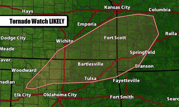 Tornado Watch is LIKELY this afternoon. Baseball or larger hail and a few *strong* tornadoes all possible.