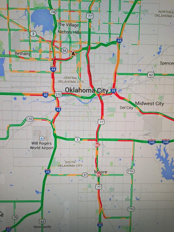 RT @ounwcm: 440pm – if you haven’t left work yet in OKC, I’d stay where you are. Traffic is a nightmare. #okwx http://t.co/MhWmSg4IuE