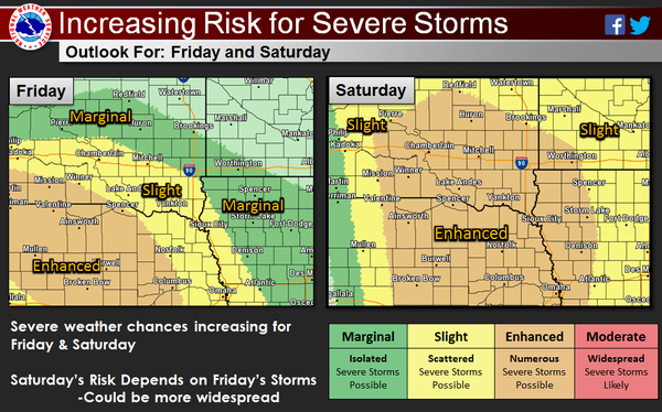 RT @NWSSiouxFalls: Severe weather returns Friday and Saturday. Hail, winds, and perhaps tornadoes. http://t.co/XrVTaABSAA