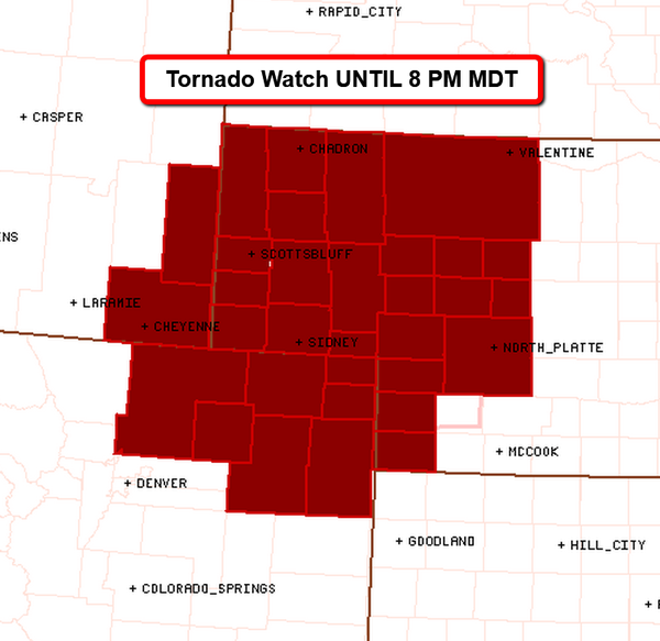 Tornado Watch now in effect for parts of Wyoming, Colorado, Nebraska: http://t.co/Y7agAGp4ui