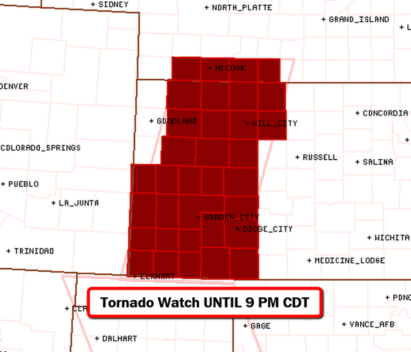 Tornado Watch just issued for western KS, southwest NEB: May 16, 2015 | 2:45 PM CST Featured Tornado Watch just issued for western KS, southwest NEB: http://t.co/aRbOVEeJaC