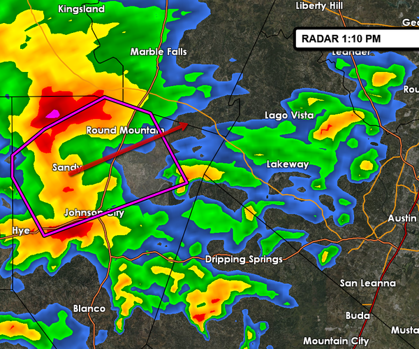 1:12pm – Confirmed large tornado near SANDY, TX. Take cover in path!