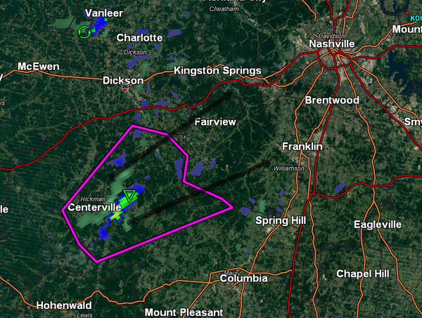 6:48pm – Confirmed tornado near Centerville, TN, moving northeast at 60mph!