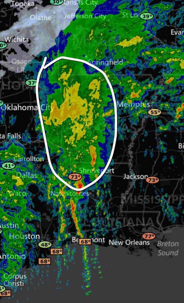 @MyRadarWX: Major flooding threat continues tonight across Louisiana and Arkansas. Some areas from E OK-AR are at 12″ of rain! https://t…