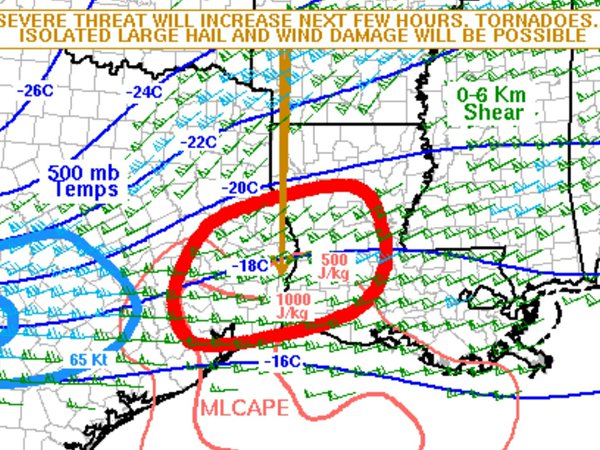 Tornadoes, large hail, and damaging winds possible for East Texas and parts of Louisiana this afternoon.