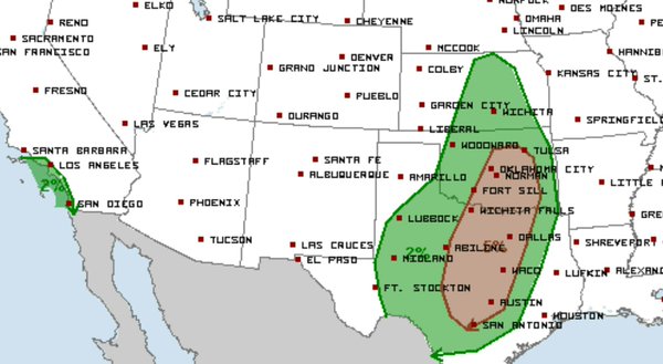 A few tornadoes today across Texas and Oklahoma, and possibly SoCal.