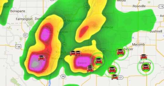Multiple chasers near a Tornado Warned cell along the Mississippi River at Keokuk, IA. LIVE