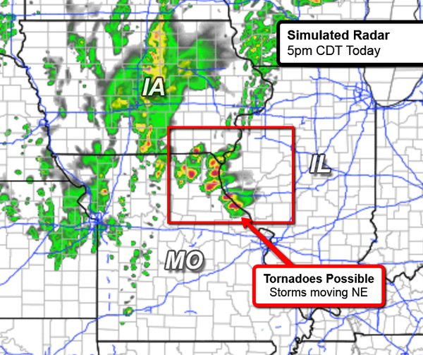 What the radar MAY look like around 5pm this afternoon. Stay alert in this area.