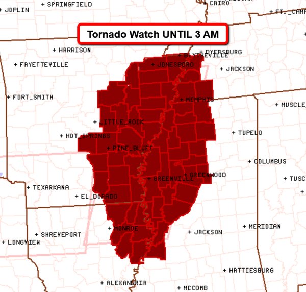 New Tornado Watch issued for ARK, TN, MS: March 30, 2016 | 6:55 PM CST Related: Arkansas, Tennessee, Featured New Tornado Watch issued for ARK, TN, MS: https://t.co/jQNeWIguLr
